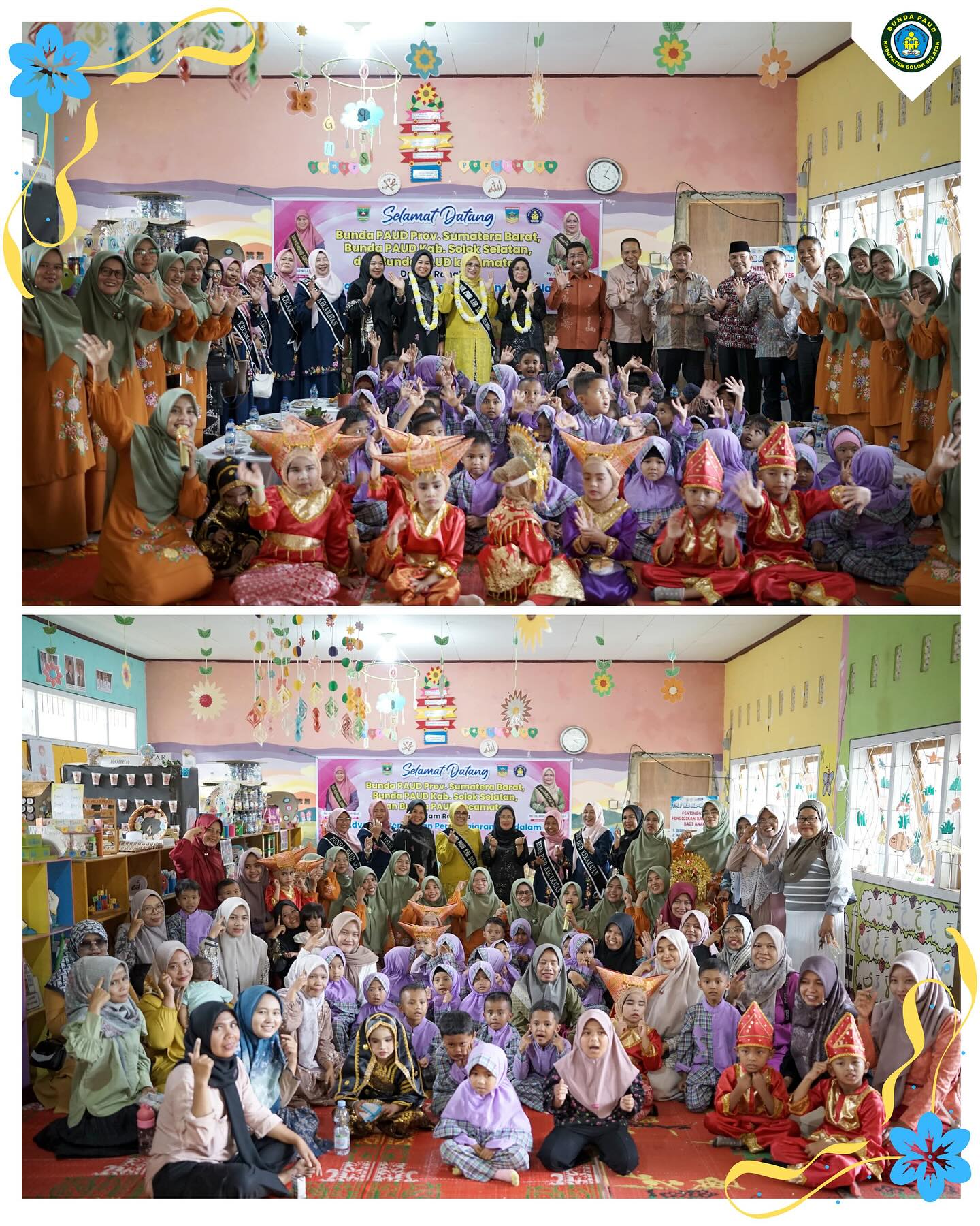 Anak-anakpun dengan antusias berinteraksi bersama Bunda PAUD Kabupaten Solok Selatan dan jajaran Pokja PAUD yang sesekali tampak bersorak bernyanyi dan bermain bersama dalam kesempatan itu.