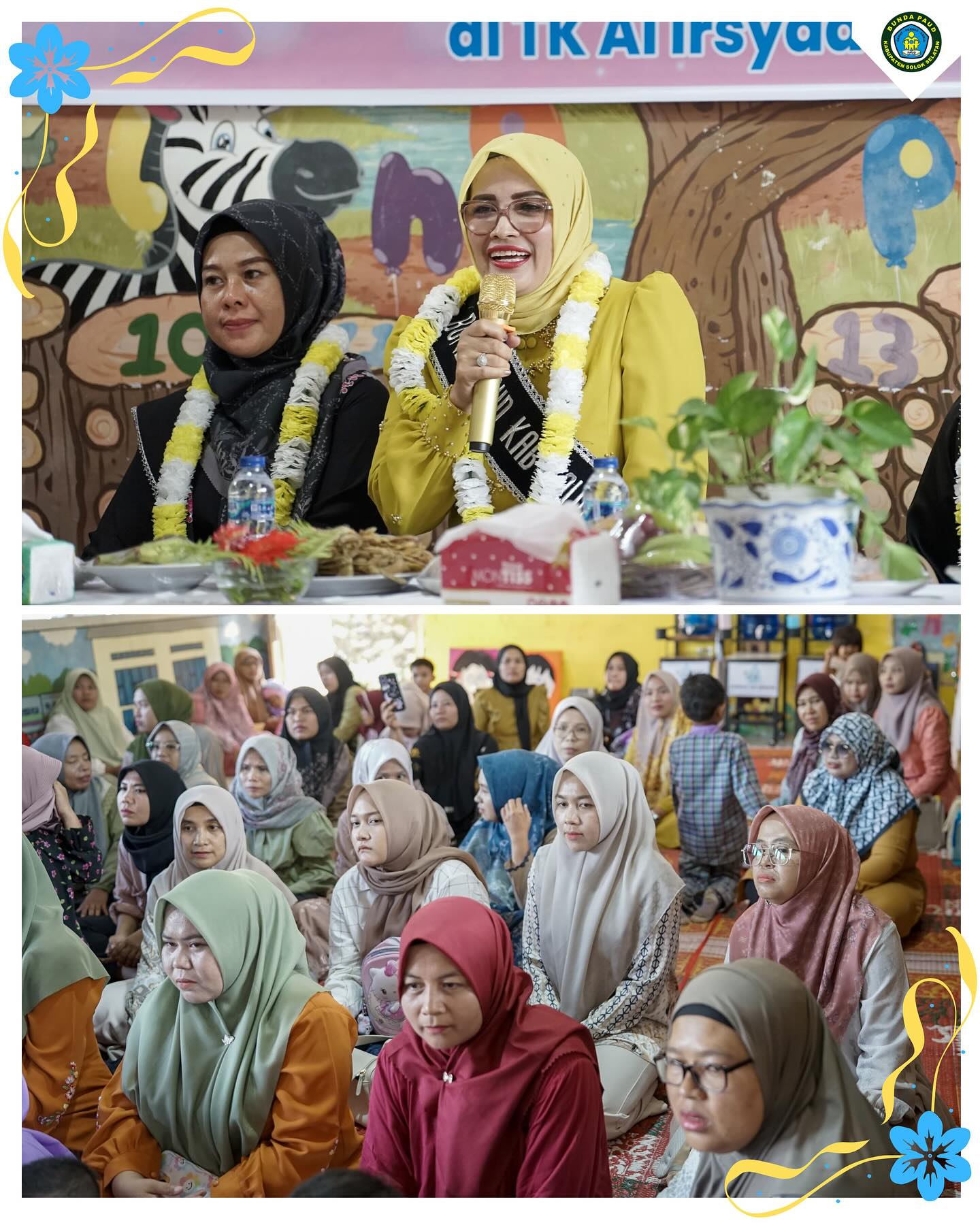 Kedatangan Bunda Erniati ke TK Al-Irsyad juga didampingi oleh Ketua GOW Ny. Hj. Bet Yulian Efi, Ketua DWP Ny. Fitri Syamsurizaldi, Asisten 3 Efi Yandri serta Camat dan pengurus Pokja PAUD Kabupaten Solok Selatan.
